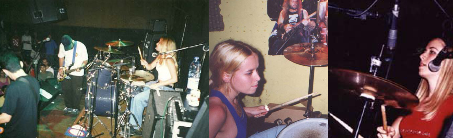 Primeiro Girls Rock Camp Brasil (aulas de bateria e produção de banda). Banda Kombato. Participação do evento Americano “ Hit Like a girls” tocando Roots do Sepultura.